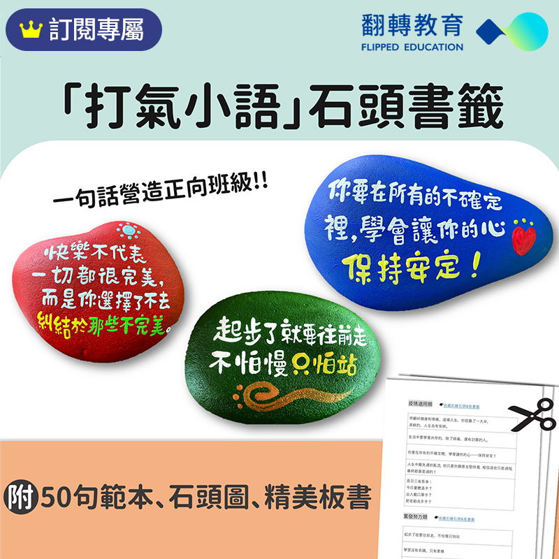 此教學資源包含10大類別、共50句打氣金句,老師可以利用聯絡簿或板書的方式,將打氣小語傳遞給孩子,或是可以收藏雲端中的照片,送給孩子作為勉勵。