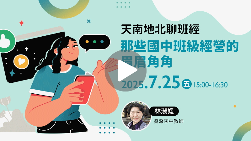 《翻轉教育》邀請擁有豐富教學與帶班經驗的資深國中教師林淑媛,不藏私分享多年的班級經營心法! 從建立自己的帶班風格、如何與學生「過招」,到與不同類型的家長有效溝通、教師的自我照顧和心態調整,淑媛老師將在直播經驗交流,和大家暢聊班級經營的酸甜苦辣。