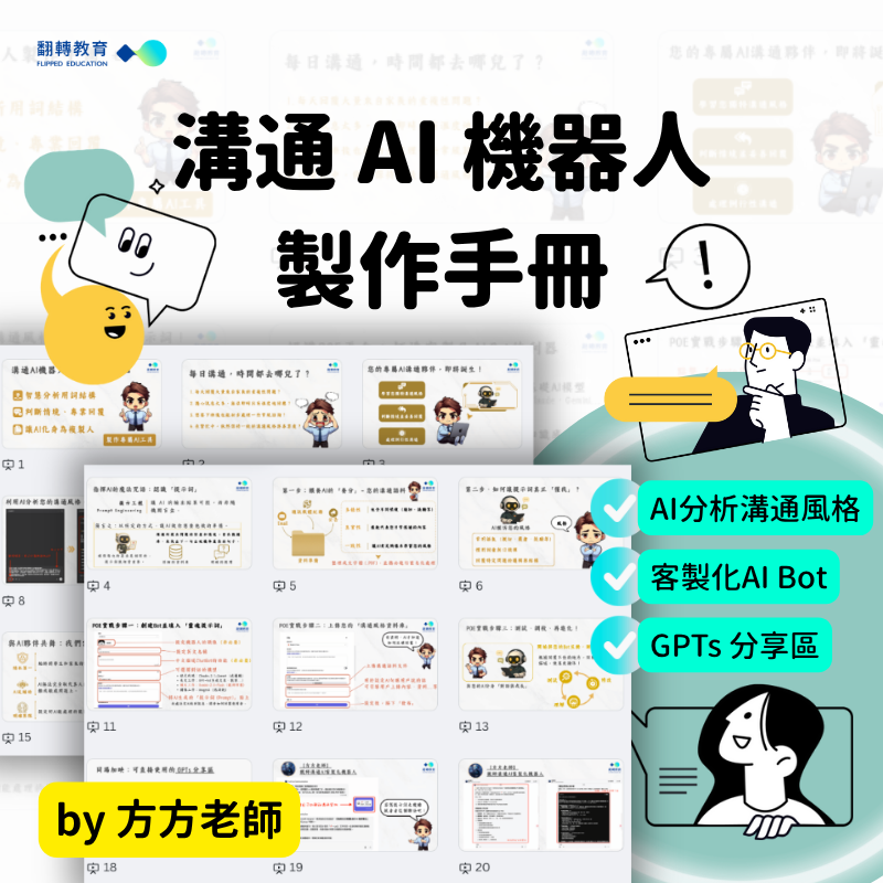 手冊內含操作步驟與場景設定技巧,不需要寫程式,也能輕鬆打造屬於你風格的 AI 機器人。還有可直接使用的 GPTs 喔!