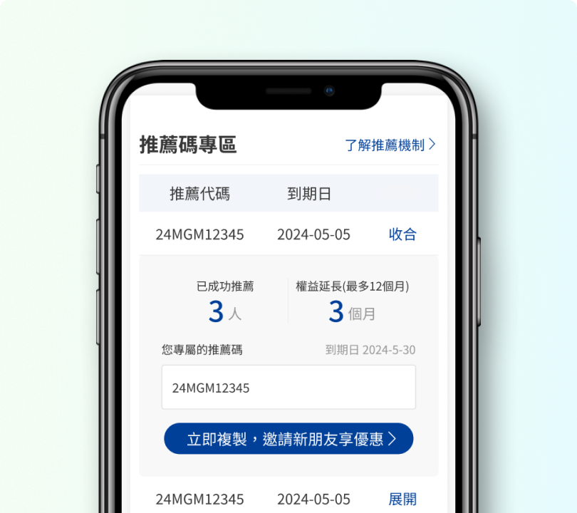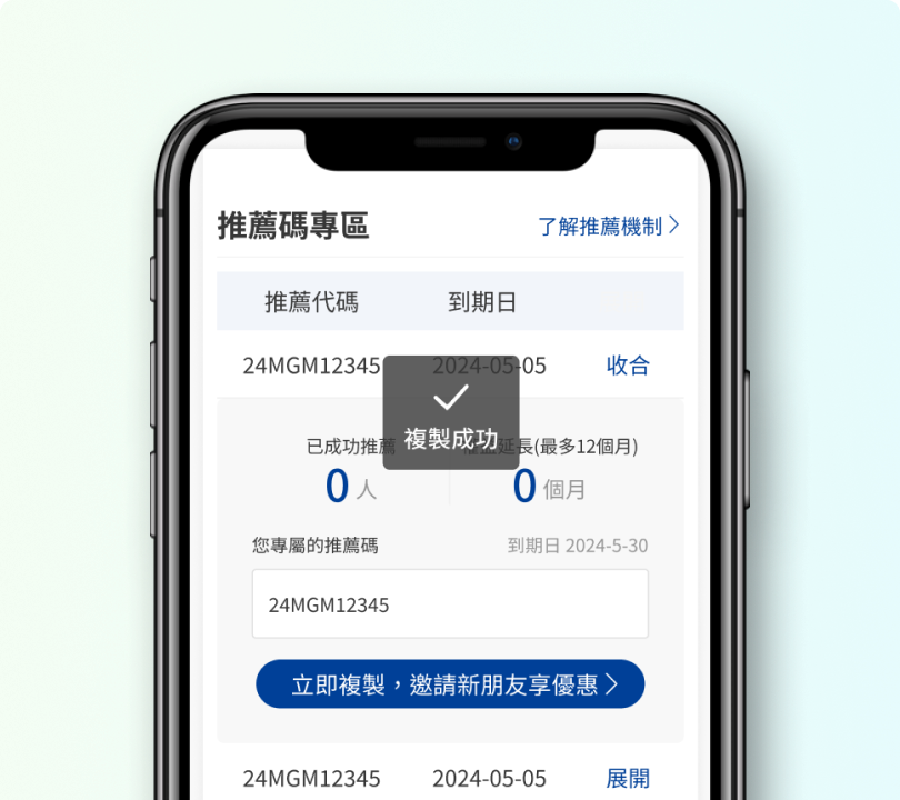 登入會員中心取得專屬推薦碼,不限平台及方式,複製並分享給新朋友