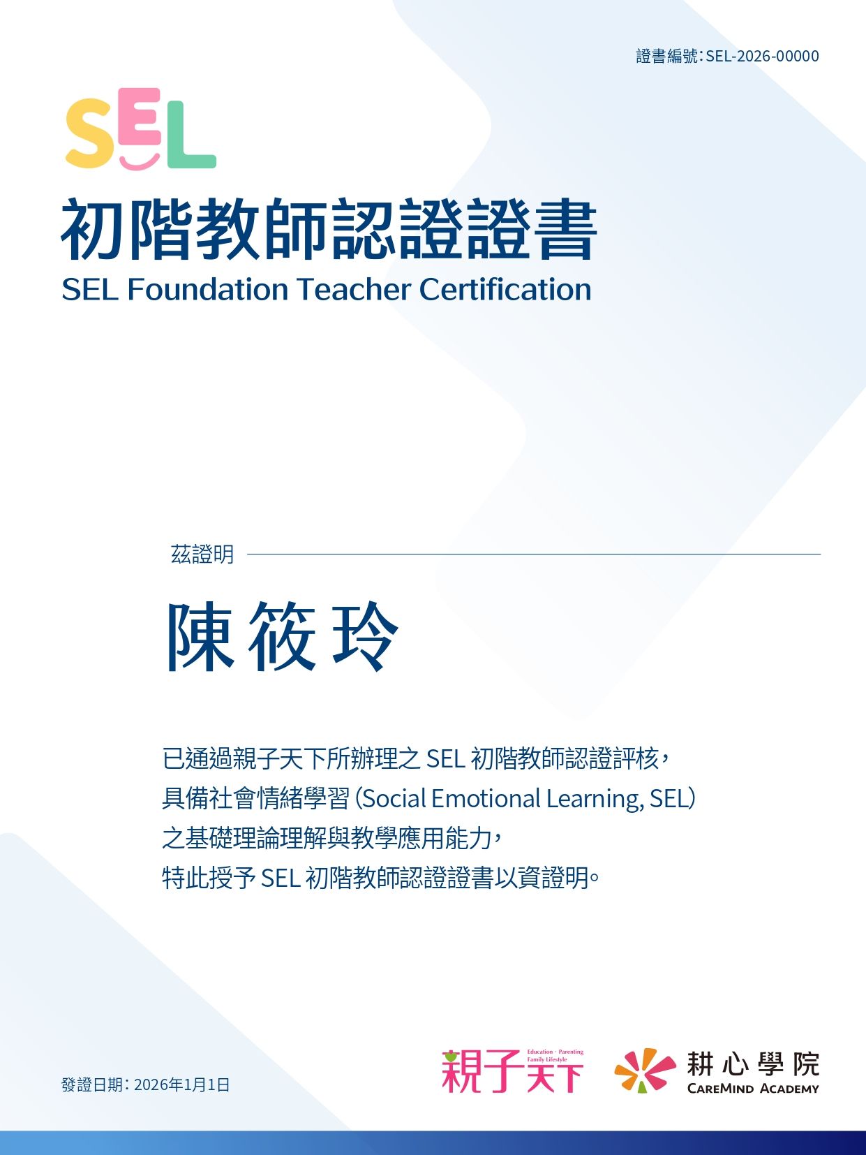 名冊公佈: 通過者將名列於「親子天下SEL初階教師認證」網站名冊。